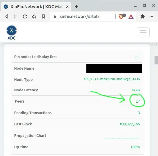 - Check peer count on: XDC Network Stats
