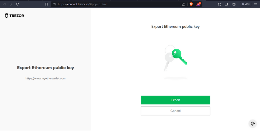 Next, you will be asked to export your Ethereum public key. Click on the Export button to proceed.
