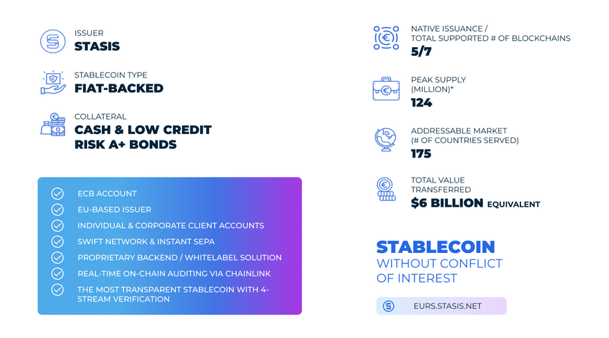 EURS is a blue-ribbon asset among stablecoins, originated in the heart of EU fintech production—Malta. Over time, STASIS has become one of the largest non-USD stablecoin issuers, with EURS products reaching a whopping $6B+ of transferred value to date.