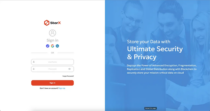 Login to your StorX account using your username password or any of the given social signup option