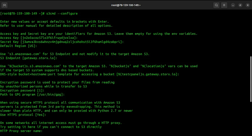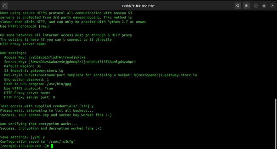 C. Let’s configure s3cmd with the storx using the access credentials: