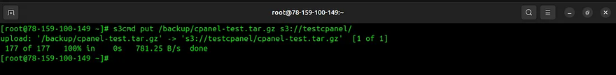 0 2 * * * tar -czvf /backup/cpanel-test.tar.gz -C /backup cpanel-test && s3cmd put /backup/your_file_location s3://your_bucket_name/