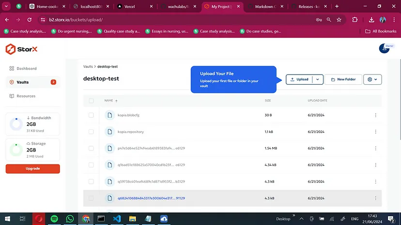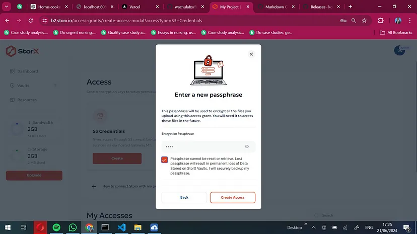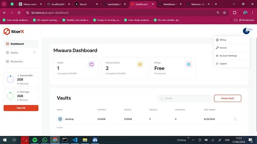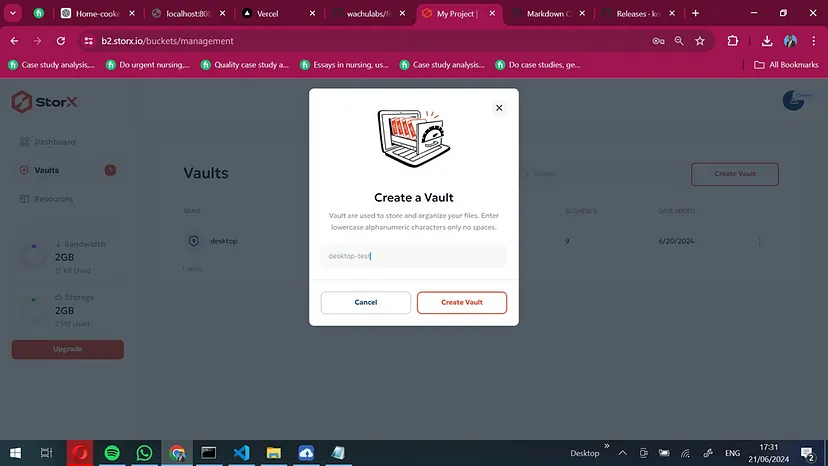 Secret Key: j3lolq5453ktsnnjfXXXXXXXXXXXXXXXXXXXXXXXXXXXXXXXXXXXX Endpoint: gateway.storx.ioCreate a vault that will be used