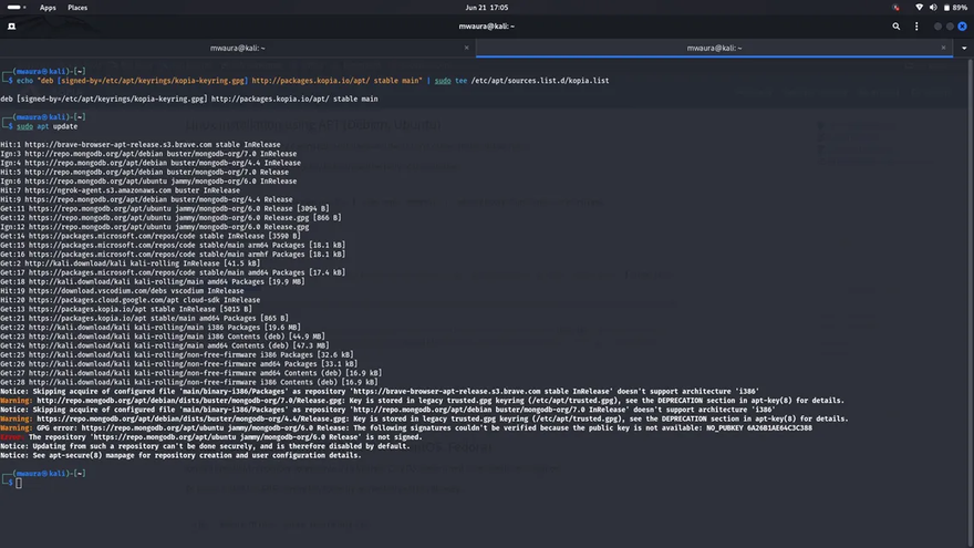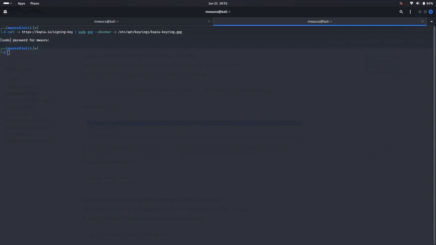 curl -s https://kopia.io/signing-key | sudo gpg — dearmor -o /etc/apt/keyrings/kopia-keyring.gpg