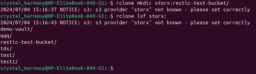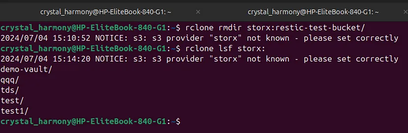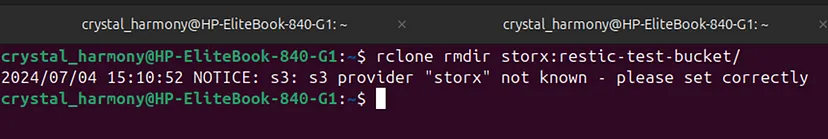 Rclone rmdir storx:restic-test-bucket/ — →>>(Note:-Put forward slash)