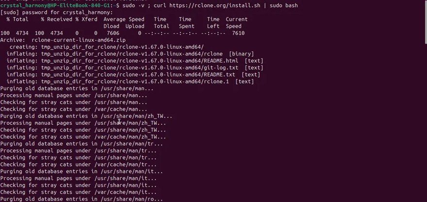 To install Rclone on Linux/macOS/BSD systems, run the following: