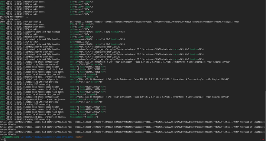puppethfrom the XDPoS Chain repo to generatebootnode.keyandgenesis.json. - As per the aforementioned guide, clone the Local_DPoS_Setup repo and replace