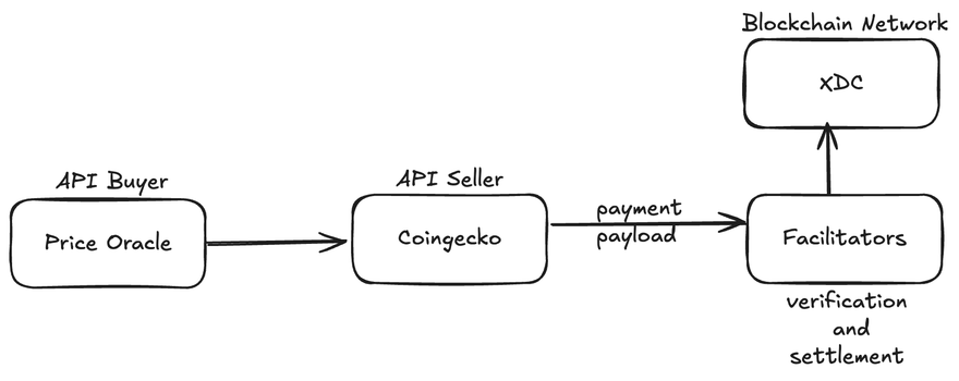 - The API creator forwards it to a facilitator service, which verifies transaction validity and signature, broadcasts it to the blockchain, on confirmation, unlocks the actual API response.