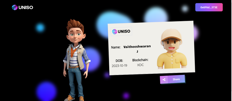DESCRIPTION: "Uniso Identity" is a cutting-edge blockchain project powered by XinFin's XDC technology, enabling secure and privacy-centric identity verification. By converting personal details into NFTs on the XDC blockchain, it reduces identity fraud risk and simplifies verification processes. With a focus on security and trust, this platform offers a reliable and scalable solution for universal digital identity management. The utility which has been shown in this project is Asset Warranty which is supply chain within which Wanchain has been incoporated. The Uniso identity can be used for verification in Asset Warranty.