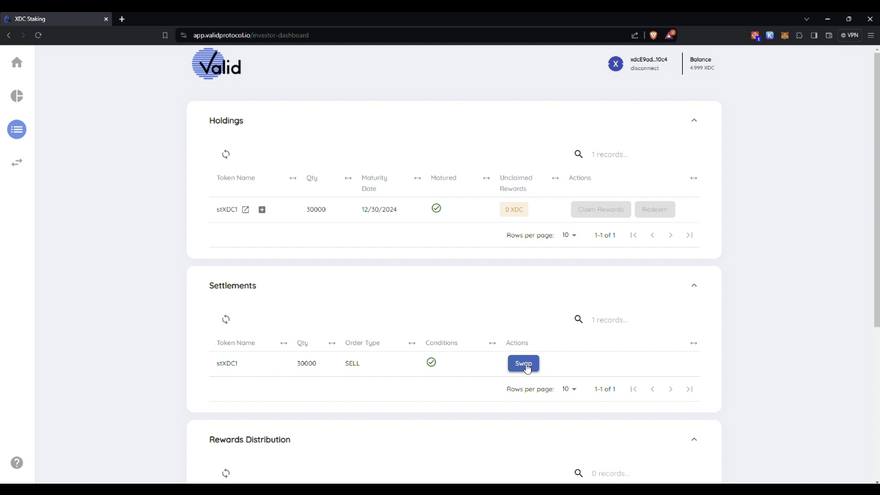 Upon completing the swap, you will see your XDC tokens returned to your wallet, with the stXDC now removed. This seamless process ensures that you have full control over your tokens, with the Valid Protocol providing a failsafe mechanism to protect your staked XDC.