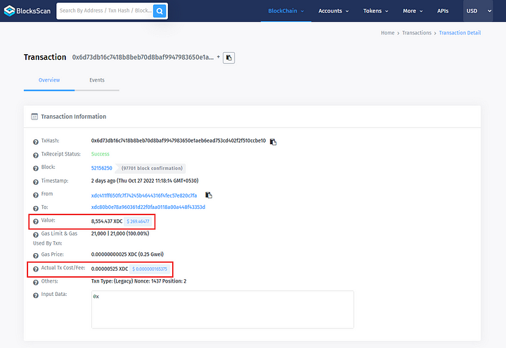 XDC Transaction: https://xdc.blocksscan.io/txs/0x6d73db16c7418b8beb70d8baf9947983650e1aeb6ead753cd402f2f510ccbe10