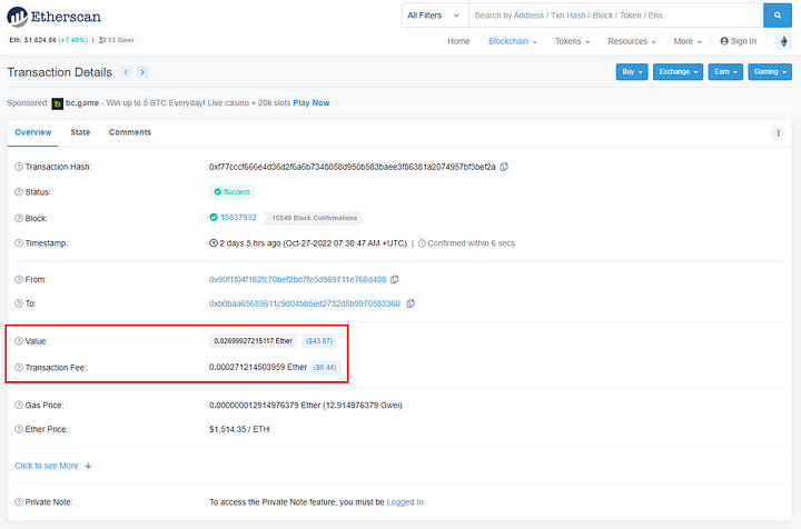 ETH Transaction: https://etherscan.io/tx/0xf77cccf666e4d36d2f6a6b7348058d950b583baee3f86381a2074957bf3bef2a