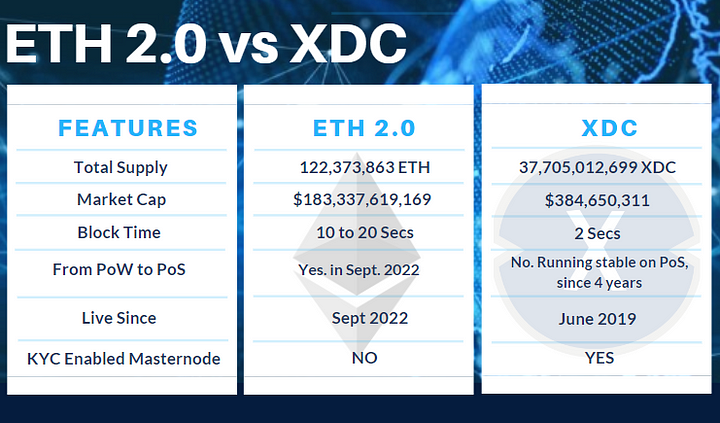 Staking on the Ethereum Network(ETH 2.0) has been functional for one month, but the XDPoS-based XDC Network has been reliable for four years.