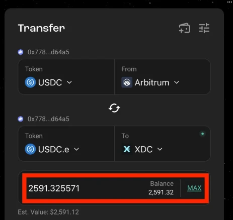 - Check your wallet balance to confirm the receipt of USDC on the XDC Network.