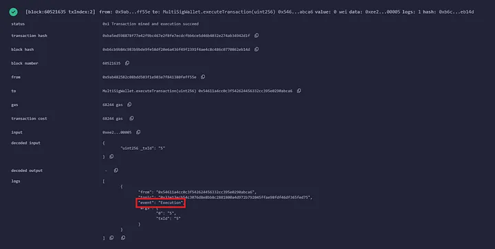 - After a transaction is submitted, other owners need to confirm it before it can be executed.