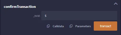 - Each owner can confirm the transaction by calling the confirmTransaction function with the transaction ID (_txId). This function can only be called by the contract owners who haven't already confirmed the transaction.