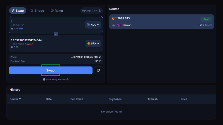 - Some native XDC in your wallet for the swap and gas fees