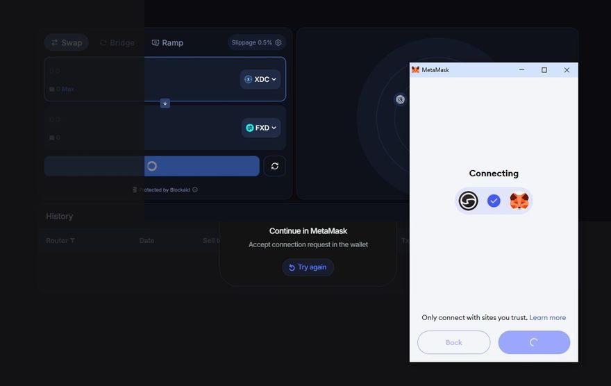 - If this is your first time swapping XDC to this token, you may be prompted to approve the token in your wallet.