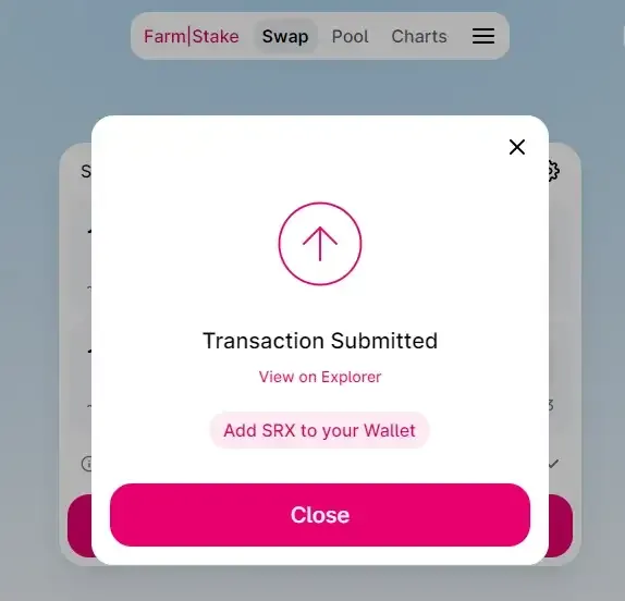 This is how the Swap will get executed, and the user can check the transaction hash on an explorer.
