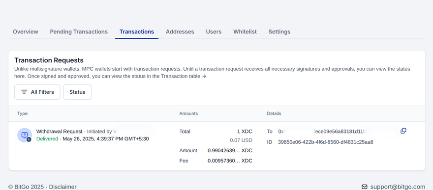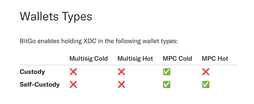 BitGo offers two primary wallet configurations for XDC: Digital Asset Custody Services