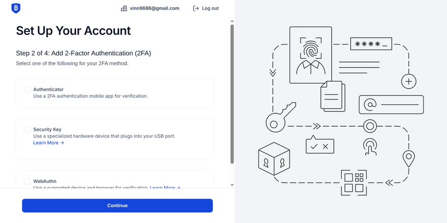 Step 4: Once submitted, Setup Your Account with 2FA or with Security Key…