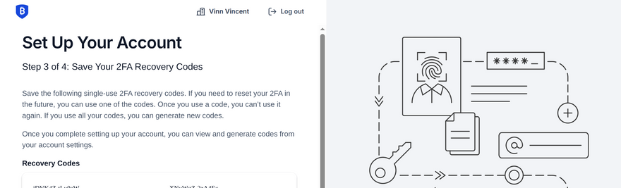 Here, we have proceeded with 2FA, Save your 2FA recovery codes safely.