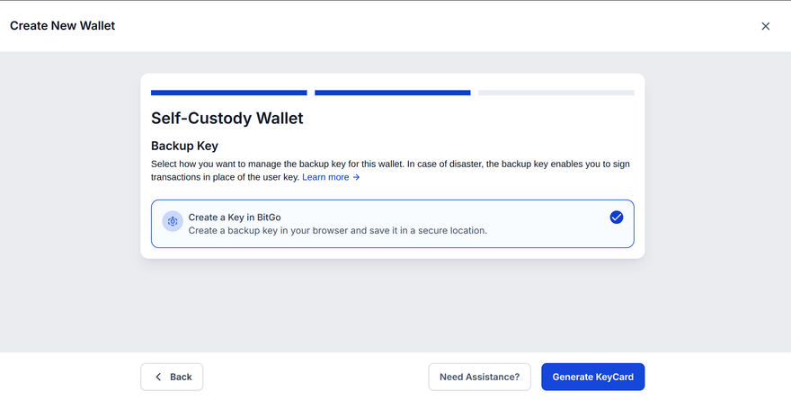 Select “Create a Key in BitGo” and click on the “Generate KeyCard” button.