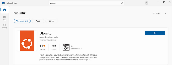 Alternatively, after WSL is installed, search for Ubuntu in the Windows Store and install it as an app in the Start menu.