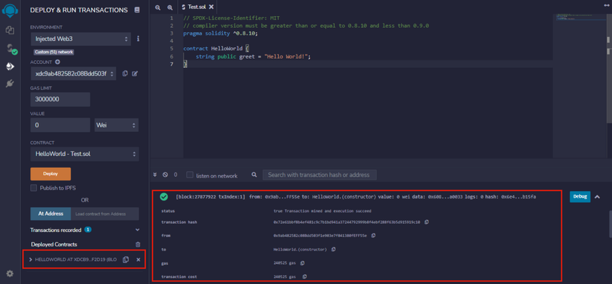 Here we are using a simple Smart Contract which displays the greetings: “Hello World!”