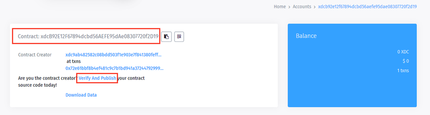 Once you deploy your Contract on XDC Network (On Testnet i.e on the Apothem Network), you can Verify it on XDC Explorer.