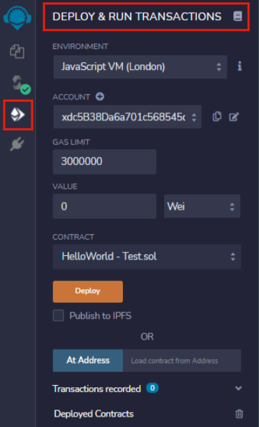 After successfully compiling your contract, you can now deploy it. Go to the “DEPLOY & RUN TRANSACTIONS” Tab.