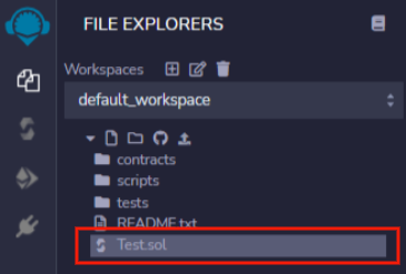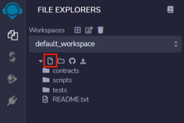 In Remix, create a new file named Test.sol. To create a file, click on the Icon of the File at the top left corner of the page: