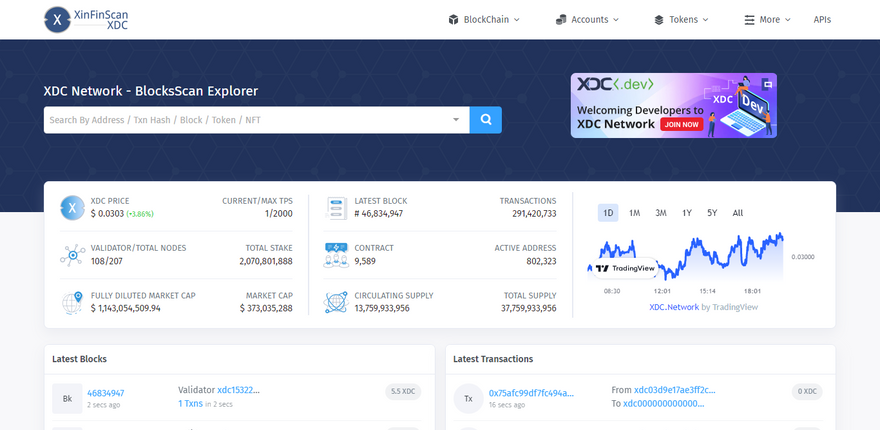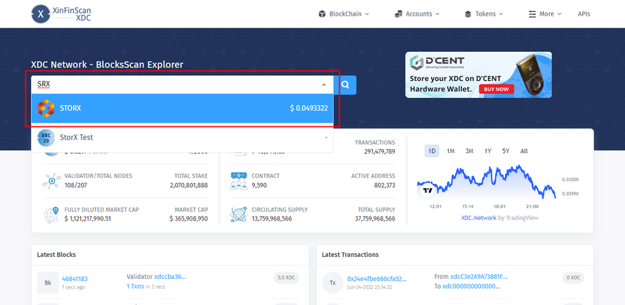 Step 1: Visit XDC Explorer, If you have a balance of the token you are trying to add, search for your Contract address (xdc…) in the search bar and find your token by its Contract Address, Name, or by Symbol.