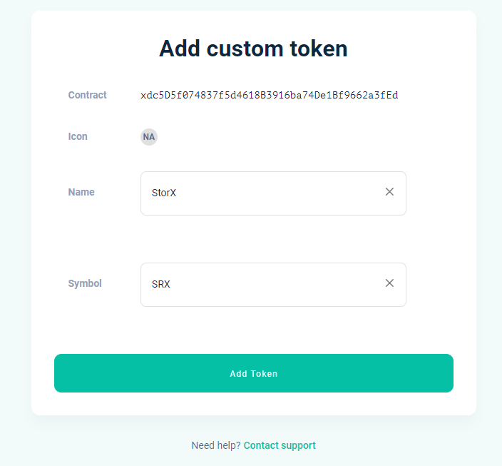 If the token's contract address is not a well know token, you will be prompted to manually enter the contract address, the icon, the token name, and the symbol.