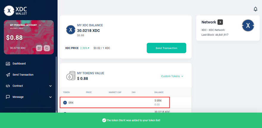 Follow these steps for adding any XRC20 tokens to your XDC Web Wallet.