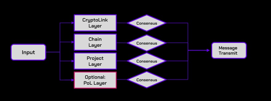 At the heart of CryptoLink's omnichain technology lies our robust Multilayer Security Stack, designed to safeguard the integrity of cross-chain communication. This comprehensive security model employs four independent layers of validation, ensuring that every transaction is secure, authenticated, and resistant to unauthorized or fraudulent activities. This meticulous approach to security not only reinforces the reliability of our platform but also instills confidence among developers and users in the XDC ecosystem.