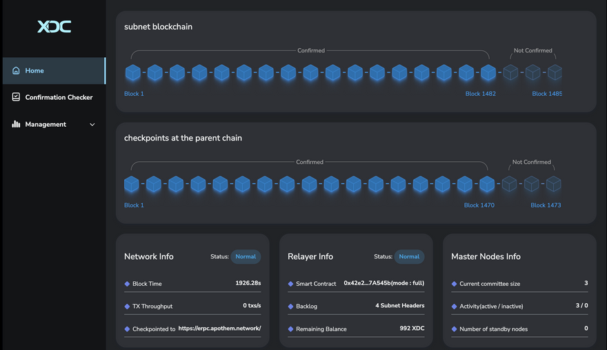 XDC-Zero Interoperability: XDC-Zero, our advanced cross-chain system, facilitates seamless blockchain interoperability. It ensures efficient and secure data transmission between the Parentchain and Subnet, enhancing overall network connectivity.