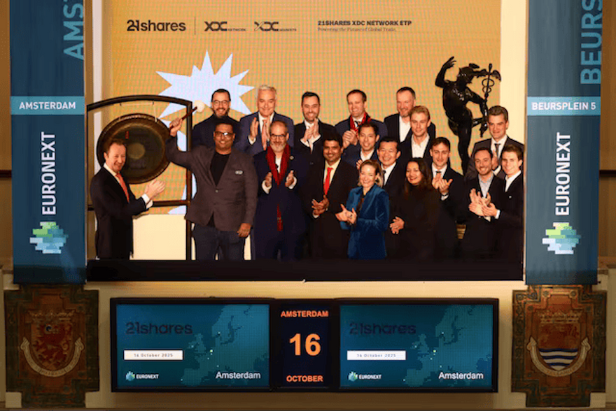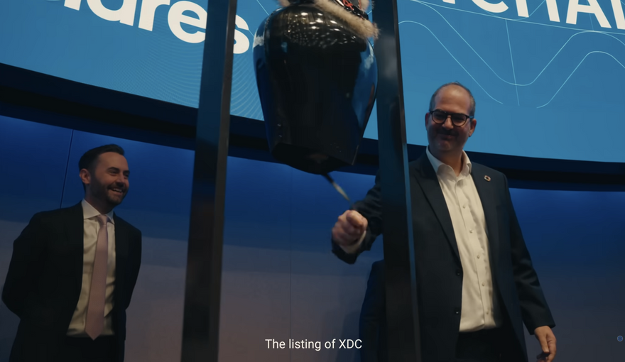 - Representative of making inroads with the traditional financial industry, XDC Network’s Ziv Keinan rang the bell at the SIX Swiss Exchange in Zurich on the momentous occasion of the listing of the first-ever 21Shares XDC Network Exchange-Traded Product (ETP), which allows investors to benefit from XDC’s role in global commerce.[1] The ETP is denominated in both EUR and USD, and is fully collateralized by underlying XDC assets, which are held securely in cold storage.