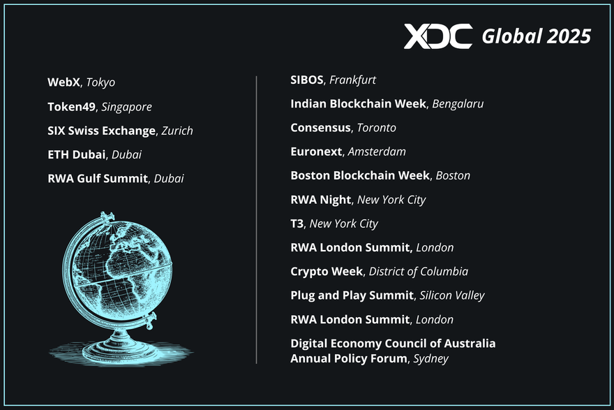 - In Europe, XDC Network cofounder Atul Khekade attended and participated in a gong ceremony at Euronext Amsterdam, while the network had a presence at SIBOS 2025 in Frankfurt, Germany.