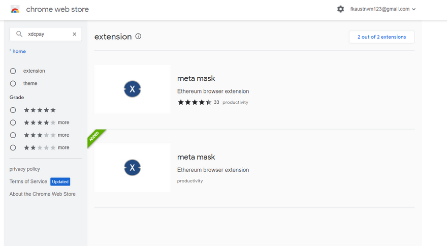 In Korea, when you search for XDCPAY, it appears as a meta mask and displays an explanation that it is an Ethereum browser extension program.