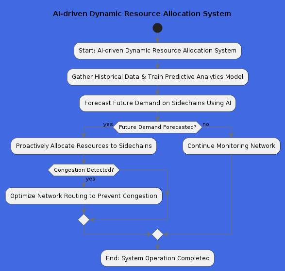 - AI-driven dynamic resource allocation fortifying the sidechaining performance: Our system's AI-driven dynamic resource allocation can significantly enhance the performance of sidechains in a blockchain network by optimizing resource utilization and improving scalability, using Predictive Analytics and Leveraging historical data, Our AI model can forecast future demand on sidechains. With this foresight, our system can proactively allocate resources such as computational power, storage, and bandwidth to sidechains before congestion occurs, ensuring smooth operation during peak usage periods. We have also created a Smart Routing framework which Optimizes network routing protocols to distribute transaction flow efficiently and prevent congestion bottlenecks.