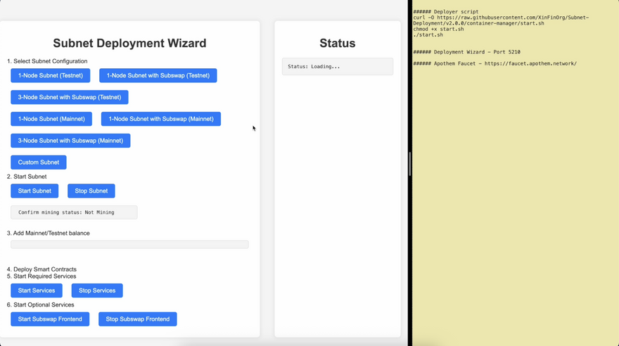 All you need to get started is to run this script on the machine you want to run your subnet and open the deployment wizard on port 5210!