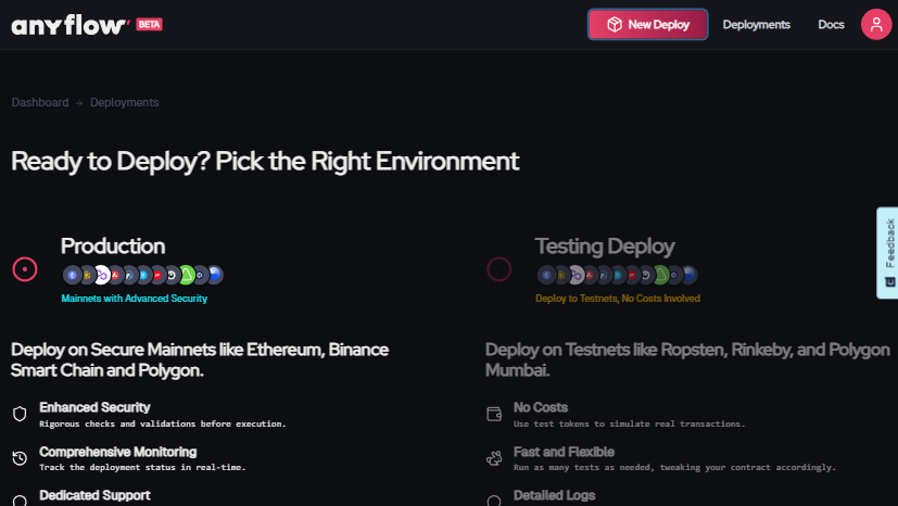 Anyflow provides a simple and intuitive interface, allowing developers to deploy their smart contracts in just a few steps.